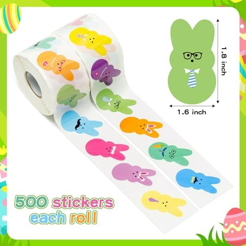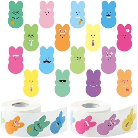 CNhoqc 1000pcs Easter Colorful Bunny Peeps Sticker Roll