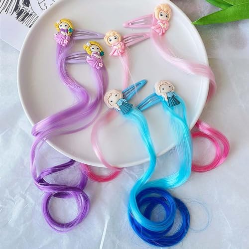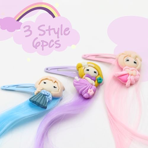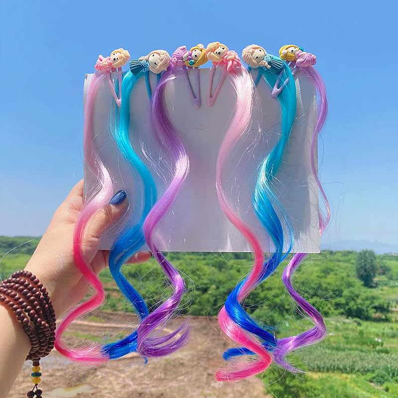 6 Pcs Princess Hair Clips for Girls Colorful Hair Accessories Cute Curly Hair Extensions for Kids Toddler Dress Up Supplies Birthday Gifts