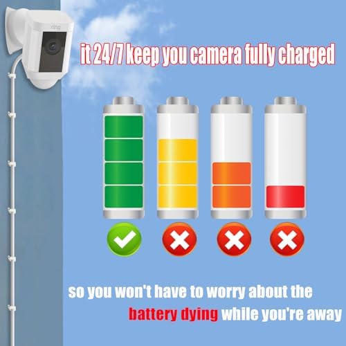 The charger power it 24/7 so you won’t have to worry about the battery dying while you’re away, keep you camera fully charged.