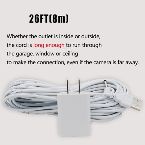 Adapter for Ring Stick Up Camera Charger Cord Plug in Power Supply Spotlight Cam Battery 2nd 3rd Gen Indoor 26FT Long Extension Cable Outdoor Weatherproof