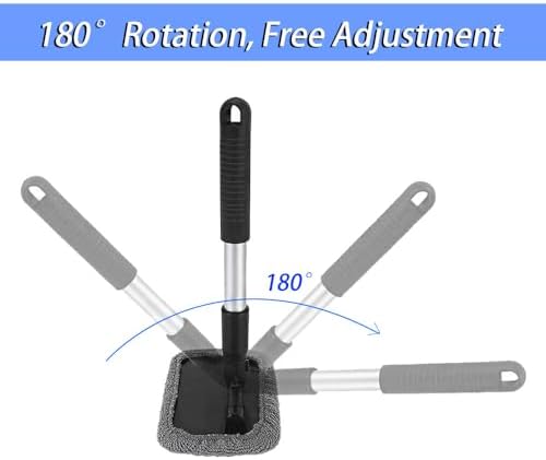 [180° Rotating brush head]: The Car Windshield Glass Cleaning Tool features a 180° rotating brush head design that removes dust from the interior parts of the car, such as the front and rear windshields, side Windows, sunroofs, and also cleans the exterior parts of the car, such as the hood, roof, and doors. With a large cleaning range, it’s easy to clean hard-to-reach cleaning areas with a retractable handle and a superfiber rotating pad.