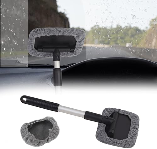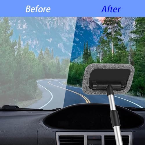 Car Cleaning Window Tool, Windshield Cleaner with Microfiber Cloth & Extendable Handle, Windshield Cleaning Tool, Car Interior Accessories Car Wash Tools Fit for Auto Glass Wiper