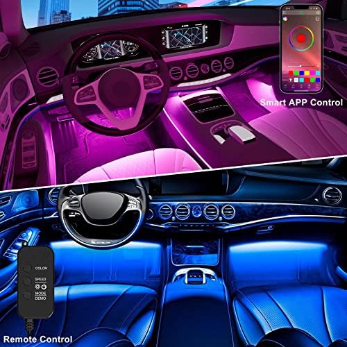 Car LED Lights,Smart App Control,RGB Inside Car Lights DIY Dynamic Color Music Mode 4Pcs Strip Lights for Cars with Car Charger, DC 12V