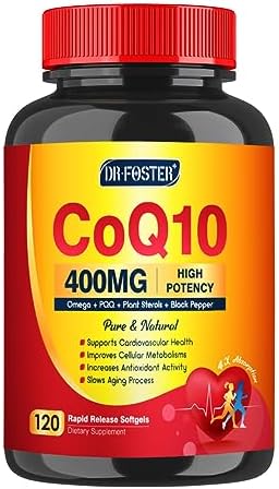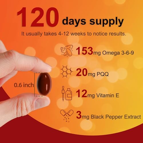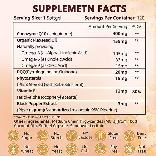 CoQ10 400mg SoftGels CQ10 Coenzyme Q10 Supplement, Plus PQQ, Omega 3, and Vitamin E, for Heart Health and Cellular Energy, 120 Servings