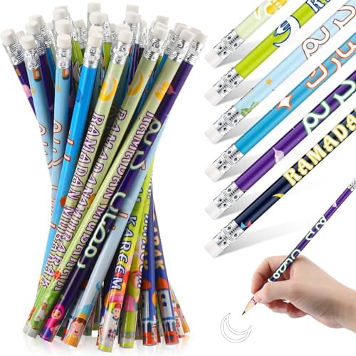 Crtiin 48 Pcs Ramadan Pencils Ramadan Mubarak Party Favors Decoration Arabic Novelty Toy Muslim Kids Gifts School Party Supplies for Kids Students Classroom Learning Activities
