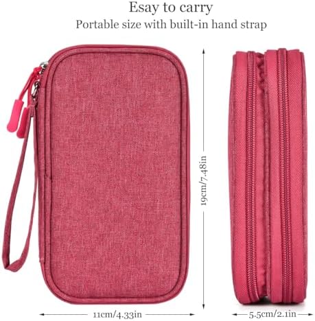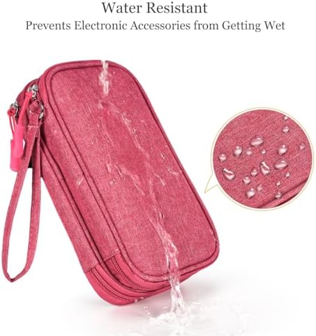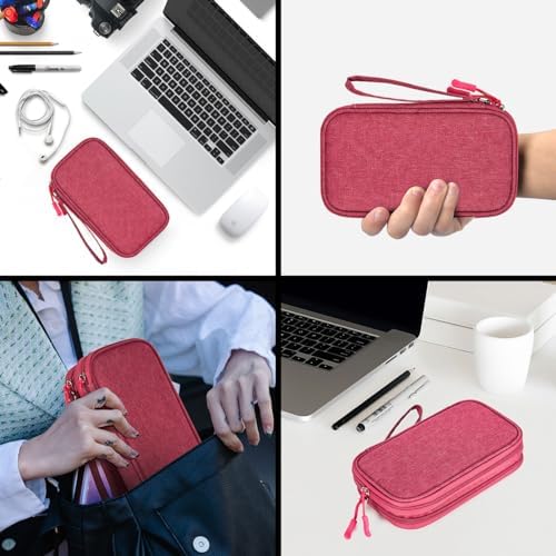 Electronic Organizer Travel Cable Accessories Bag, Electronic Organizer Case, Waterproof Electronic Accessories Organizer Bag for Power Bank, Charging Cords, USB Cable (Rose Red)