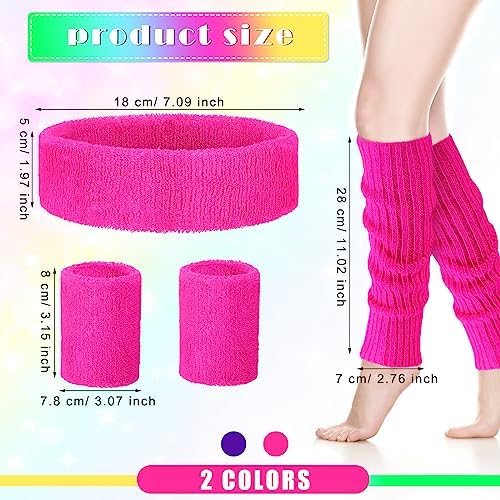 Giegxin 2 Set 80s Leg Warmers Set for Girls Kids Neon Ribbed Knit Leg Warmers Fitness Headband Wristbands for Cosplay Party