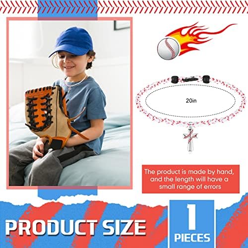Glenmal 2 Rope Baseball Cross Necklace Boys Baseball Titanium Necklace Stainless Steel Cross Pendant Sports Braided Tornado Baseball Necklace Gifts for Men Kids, 20 Inches