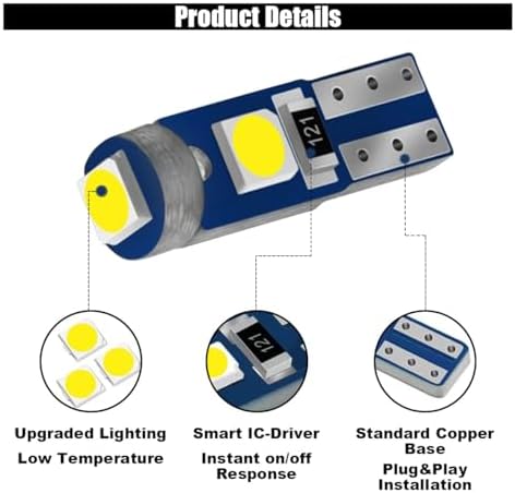 【Widely Applications】:Can be used for interior lights, dashboard lights, dashboard lights, instrument cluster indicators, map lights, dome lights, license plate lights, trunk/cargo lights, vanity mirror lights, door welcome lights, glove box lights, side lights, air conditioners Indicator lights, center console lights, front/rear side marker lights, RV camping lights, etc.