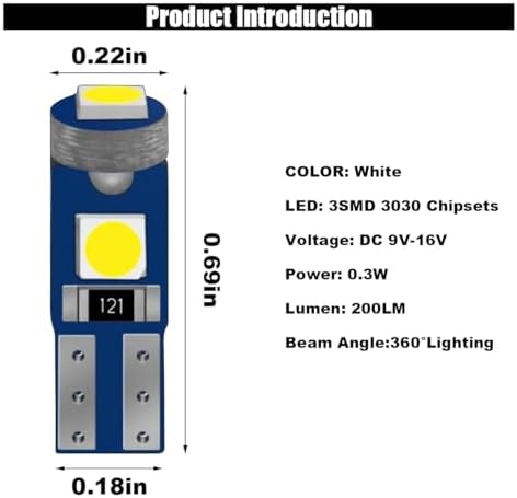 【Advantage】:These T5 bulbs use 3030-SMD chips, which have pure and vivid colors and suitable high brightness, making the view in the car clearer and refreshing. With a service life of up to 3333 hours and stable performance, it is the best replacement for LED bulbs on instrument panels.