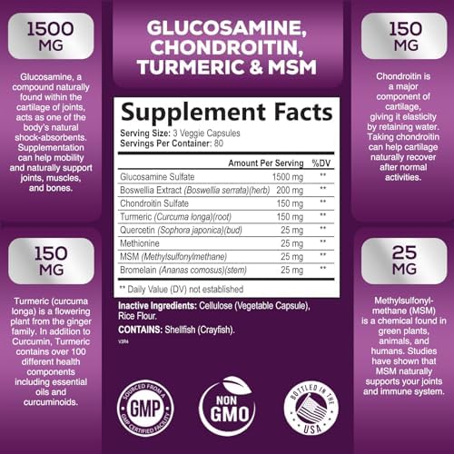 Joint Comfort and Mobility: This blend of Glucosamine Chondroitin MSM with Turmeric supports joint flexibility and comfort that naturally decreases with age