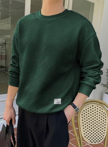 Men’s Crewneck Sweatshirts Soild Color Geometric Texture Long Sleeve Casual Pullover Shirt