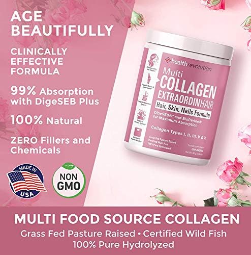 Multi Collagen With Unparalleled 99% Absorption Rate – This clinically effective Multi Collagen Protein Powder from Health Revolution has been expertly formulated with a special digestive enzyme called DigeSEB Plus and BioPerine for nutrient bioenhancement, delivering an absorption rate that is unmatched by any other brand. Absorption is a big problem with collagen peptides, but we’ve solved this with our superior and advanced blend, which includes collagen peptides Types I, II, III, V and X.