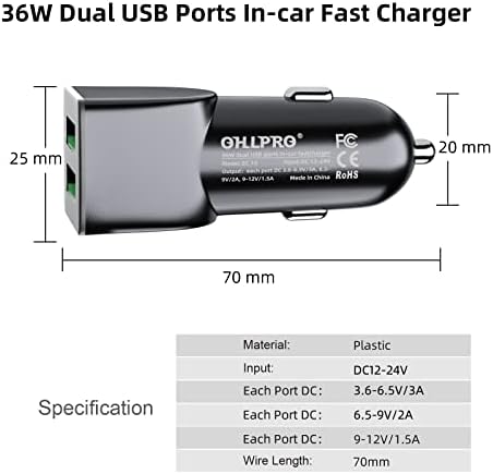 OHLPRO 3-in-1 Retractable Backseat Car Charging Station, 36W Fast Car Charger for All Phones (iPhone, Samsung), Ideal for Lyft, Turo, Uber, Taxi, Rideshare, Customer Charging Dock Attach to Headrest