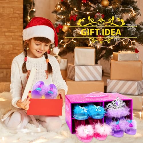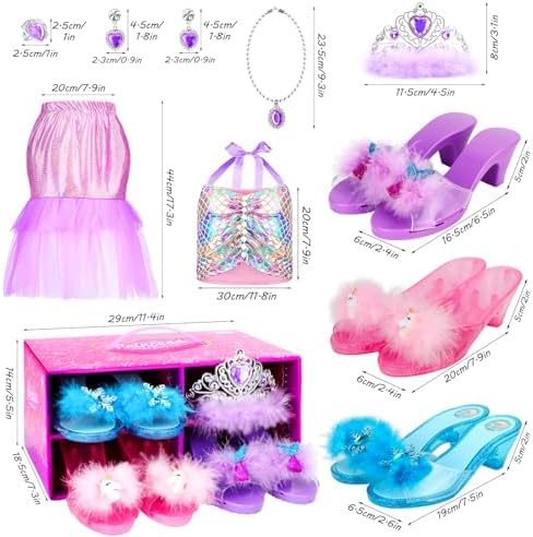 Princess Dress Up Shoes Set, Dress Up Toys Jewelry Boutique Set, Princess Dress Up Clothes with Mermaid Unicorn Ice Princess Shoes, Gifts for Girls 3 4 5 6 Year Old