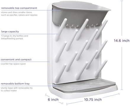 LARGE CAPACITY: 13 pegs to dry bottles and breastfeeding pumps