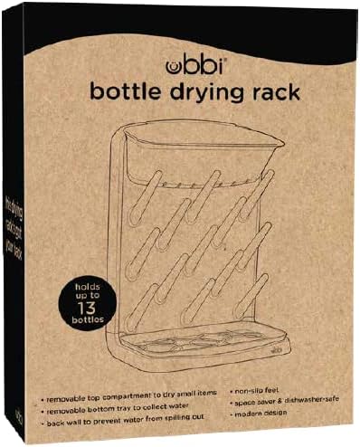 The Ubbi Vertical Bottle Drying Rack is space saving storage that has 13 pegs to dry bottles and breastfeeding pumps. The bottle organizer features a removable top compartment which stores and dries smaller items such as pacifier, valves and nipples. The removable bottom tray allows for a sturdy base to collect water. The Ubbi vertical drying rack fits any kitchen decor with its modern and trendy appearance. About us: Ubbi is a globally recognized brand, designing innovative and creative products with parents and children in mind. Under the Ubbi name, you will find unique, quality products that are easy to use, and simplify parents’ lives while keeping babies happy and safe as can be. Our steel, odor locking diaper pail was a first on the market in 2011, and has become our flagship item. With the same customer focused philosophy and innovative design capabilities, we have expanded into a variety of product categories: feeding, modern and trendy on-the-go items, and bath toys and functional accessories. From concept to final creation, the Ubbi team works together every step of the way to bring the best in design and value.