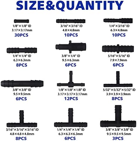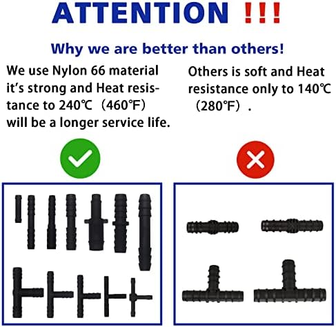【Material Detail】Made by hiqh quality black nylon 66 heat resistance to 240 ℃(460℉)to ensure the good performance.Vacuum connectors included 3 types and 12 sizes, 5 straight size, 5 tee size, 2 reducer size