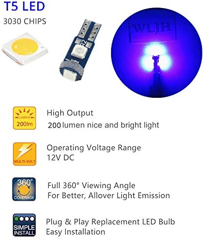 WLJH 74 Led Bulb Dash Lights Mini T5 2721 27 37 286 Wedge PC74 Twist Socket Automotive Instrument Panel Gauge Light Kits Cluster Shift Indicator Interior Bulbs 12V Blue Pack of 20